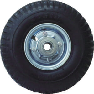 ลูกล้อนิวเมติก (Pneumatic Caster) ถูกออกแบบมาสำหรับการทำงานที่เคลื่อนที่ด้วยความเร็วต่ำ ล้อนิวเมติกที่เติมลมจะให้การกระแทกที่นุ่มนวล ช่วยดูดซับแรงกระแทกและการทำงานที่เงียบ ลูกล้อที่มีลมจึงเป็นทางเลือกที่ดีสำหรับการใช้งานนอกอาคารบนพื้นผิวขรุขระ หรือบนพื้นหญ้า เนื่องจากให้ความมั่นคงบนกรวดและล้อไม่จมลงในสนามหญ้า