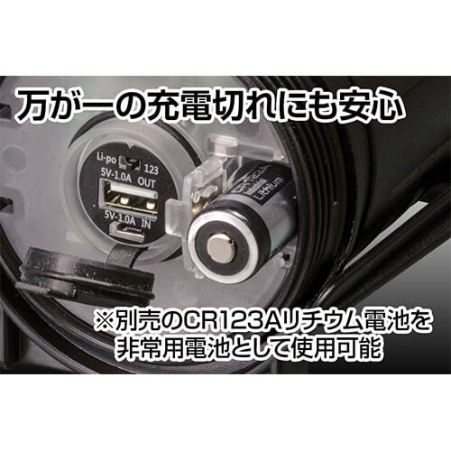 – สามารถใช้งานได้ทั้งกับแบตเตอรี่แบบชาร์จไฟได้ในตัวและแบตเตอรี่ CR123A