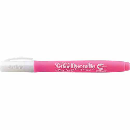 Artline Decorite Brush แบรนด์ ARTLINE เป็นปากกาพู่กันหัวแปรงคุณภาพสูงที่เหมาะสำหรับงานศิลปะ งานตกแต่ง และงาน DIY หลากหลายประเภท หัวแปรงยืดหยุ่นให้สัมผัสคล้ายพู่กันจริง ซึ่งสามารถเขียนเส้นบางหรือหนาได้ตามแรงกด น้ำหมึกเนื้อแน่น สีสันชัดเจน มีให้เลือกหลากหลายทั้งเฉดมาตรฐาน พาสเทล เมทัลลิก และสีแฟนซี ผลิตจากวัสดุพลาสติกคุณภาพดี จับถนัดมือ ปลอดภัย ไม่มีกลิ่นฉุน ใช้ได้ทั้งงานเขียนตัวอักษร ตกแต่งการ์ด สมุดบันทึก วาดภาพ หรือสร้างผลงานศิลป์สไตล์โมเดิร์น เหมาะกับทั้งนักเรียน นักออกแบบ และผู้รักงานศิลปะทุกวัย
