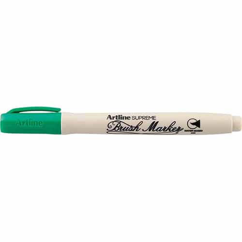 ปากกาพู่กัน Artline SUPREME แบรนด์ ARTLINE เป็นปากกาหัวพู่กันแบบซอฟต์ที่ออกแบบมาเพื่อการเขียนศิลป์ วาดภาพ และระบายสีโดยเฉพาะ ไม่ว่าจะเป็นงานแฮนด์เลตเตอร์ริ่ง งานคัลลิกราฟี สเก็ตช์ หรือระบายสีทั่วไป หัวพู่กันยืดหยุ่นได้ดี ควบคุมทิศทางง่าย สร้างเส้นได้หลากหลายทั้งแบบเส้นเล็กและเส้นหนาในด้ามเดียว หมึกสูตรน้ำสีสดชัด แห้งไว ไม่เป็นพิษ ล้างออกง่าย ตัวด้ามทำจากพลาสติกคุณภาพดี น้ำหนักเบา จับถนัดมือ ใช้งานได้นาน จึงเหมาะสำหรับทั้งนักเรียน นักวาดมือใหม่ ไปจนถึงศิลปินและผู้ที่รักงานสร้างสรรค์ทุกเพศทุกวัย