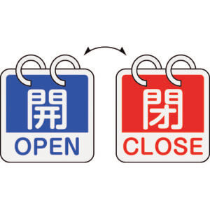 ป้ายเปิด/ปิดวาล์ว “เปิด/OPEN” (สีแดง) 50×50 มม. สองด้าน อะลูมิเนียม