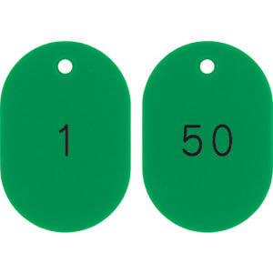 ป้ายพิมพ์วงรี หมายเลข 1-50/บัตรรูปไข่ สีเขียว หมายเลขต่อเนื่อง 604-G (1-50) 60 x 40 มม. 50 แผ่น
