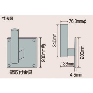 ขายึดผนังสำหรับกระจกโค้ง ฐาน 200 x 200 มม. เหล็กยึดผนัง (สำหรับกระจก)