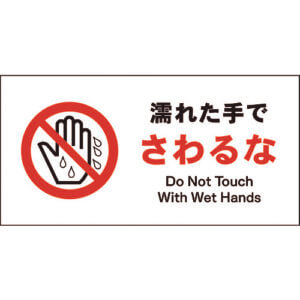 ป้ายห้าม JIS แนวนอน JWA-09M ห้ามสัมผัสขณะมือเปียก