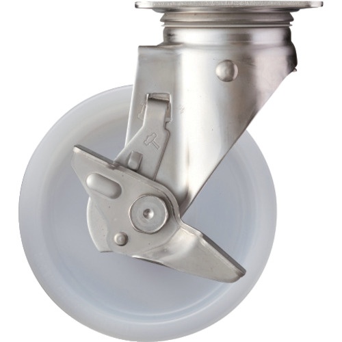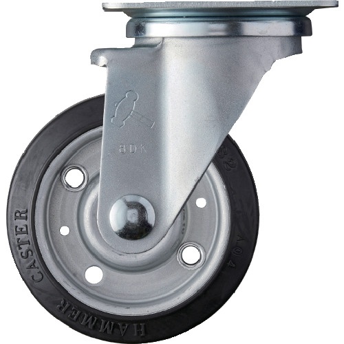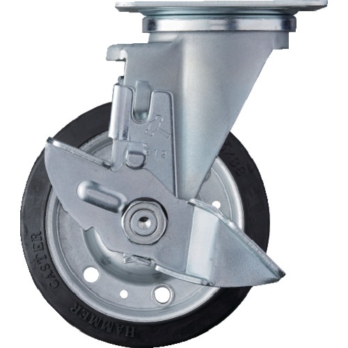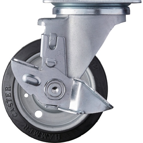 ลูกล้อสเตนเลส Hammer Plate Caster แบบหมุน (มีตัวหยุดด้านข้าง) เส้นผ่านศูนย์กลางล้อ 100 มม. ล้อยาง ซีรีส์ S