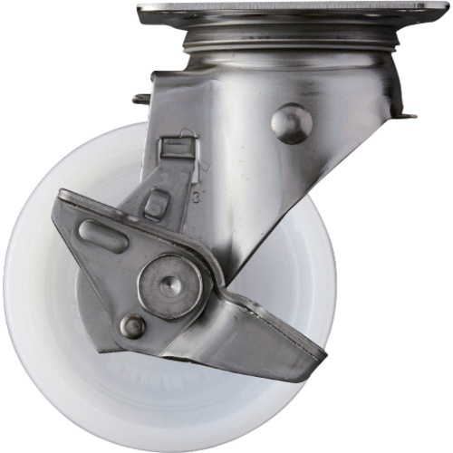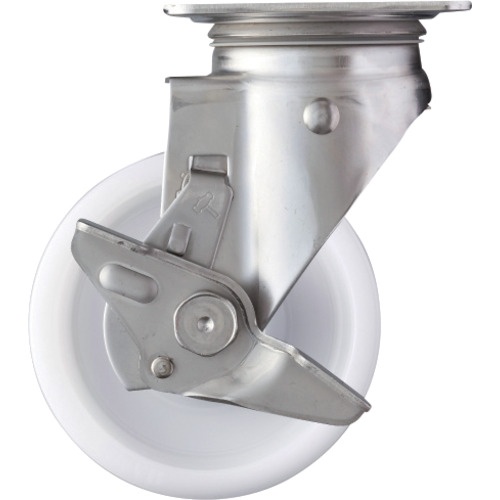 ลูกล้อสเตนเลส Hammer Plate Caster แบบหมุน (มีตัวหยุด) เส้นผ่านศูนย์กลางล้อ 100 มม. ไนลอน MC ซีรีส์ S
