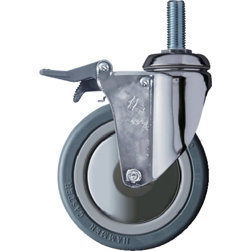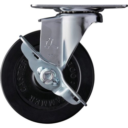 ลูกล้อชนิดจานค้อน หมุนได้ (มีตัวหยุด) เส้นผ่านศูนย์กลางล้อ 100 มม. ล้อทำจากยาง (ลูกปืน)