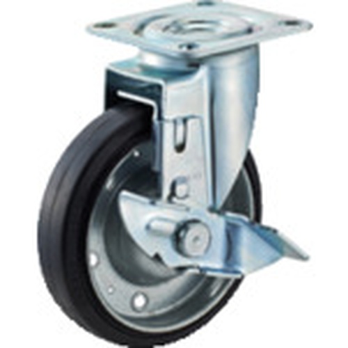 ลูกล้อชนิดแผ่นค้อน หมุนได้ (มีตัวหยุด) เส้นผ่านศูนย์กลางล้อ 125 มม. ล้อทำจากยาง (ลูกปืน)