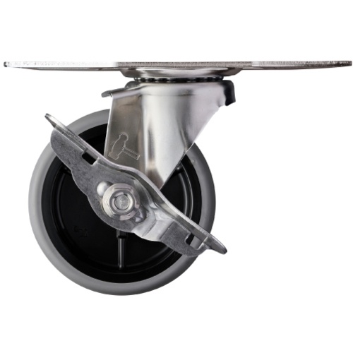 ค้อนสแตนเลสทั้งหมด มุม E-type พร้อม SP แบบหมุน ล้ออีลาสโตเมอร์ 85 มม.