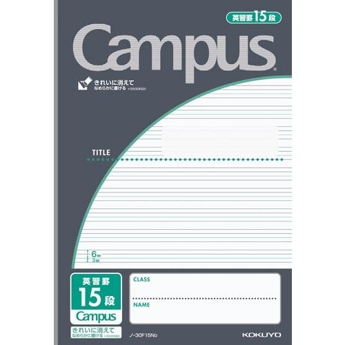 สมุดโน้ต Campus ขนาด Semi-B5 ปกกระดาษลายเส้นภาษาอังกฤษ 15 บรรทัด สีดำ เลขที่ 30F15ND