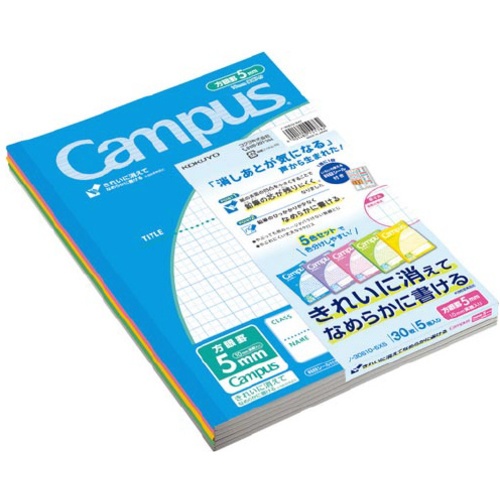 สมุดโน้ตสำหรับใช้ในมหาวิทยาลัย แบบตาราง 5 มม. แพ็ค 5 สี หมายเลข 30S10-5X5 สำหรับการใช้งานหลากหลาย