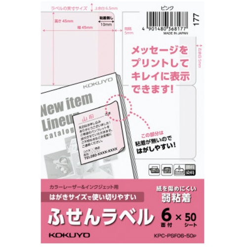 ป้ายสติกเกอร์ขนาดโปสการ์ด ใช้งานง่าย 6 ด้าน สีชมพู KPC-PSF06-50P
