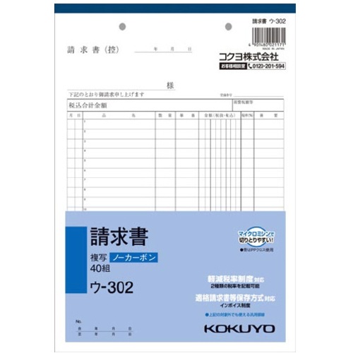 ใบแจ้งหนี้ B5 แบบไร้คาร์บอน U-302 U-302