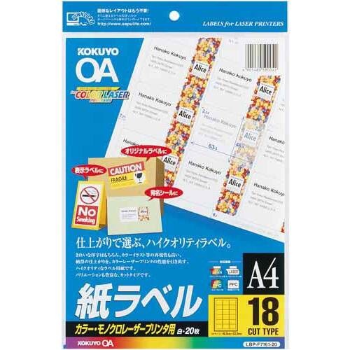 ฉลากกระดาษเครื่องพิมพ์เลเซอร์ A4 18 แผ่น 20 แผ่น LBP-F7161-20N