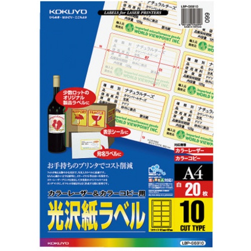 ป้ายกระดาษมันสำหรับ LBP & PPC ขนาด A4 10 ป้ายต่อแผ่น 20 แผ่น LBP-G6910