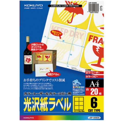 ฉลากมันเงาสำหรับ LBP & PPC, A4, 6 ด้าน, 20 แผ่น, LBP-G6906