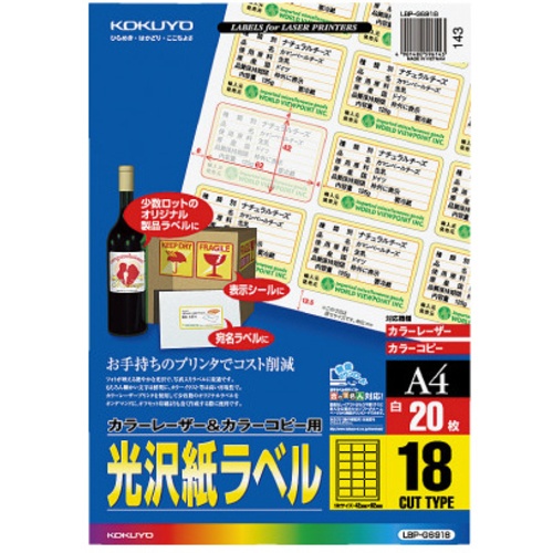 ฉลากมันวาว A4 สำหรับ LBP และ PPC, 18 ฉลากต่อแผ่น, 20 แผ่น, LBP-G6918