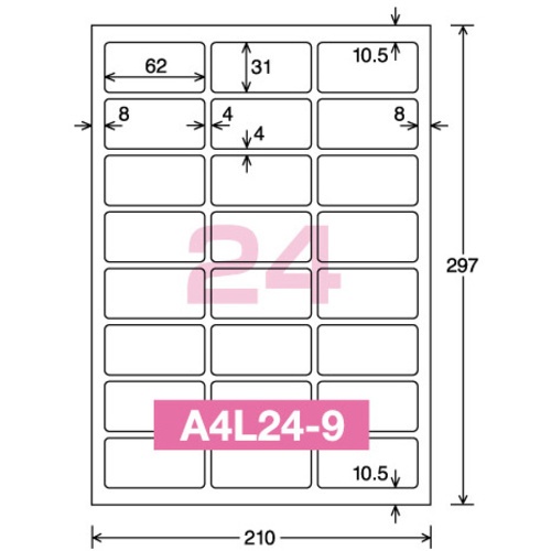 ฉลากกระดาษมันสำหรับเครื่องพิมพ์เลเซอร์ ขนาด A4 24 ฉลากต่อแผ่น 100 แผ่น LBP-G1924