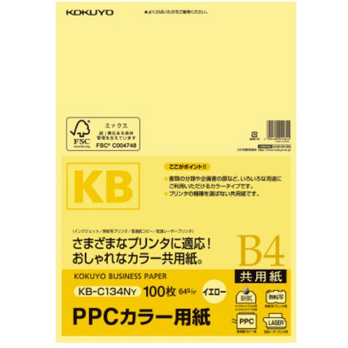 กระดาษสี PPC ใช้งานทั่วไป B4 100 แผ่น สีเหลือง KB-C134NY
