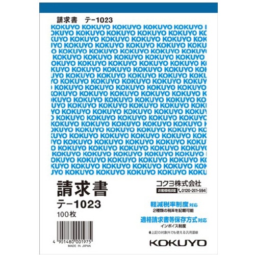 ใบแจ้งหนี้ B6 แนวตั้ง 100 แผ่น Te-1023 Te-1023