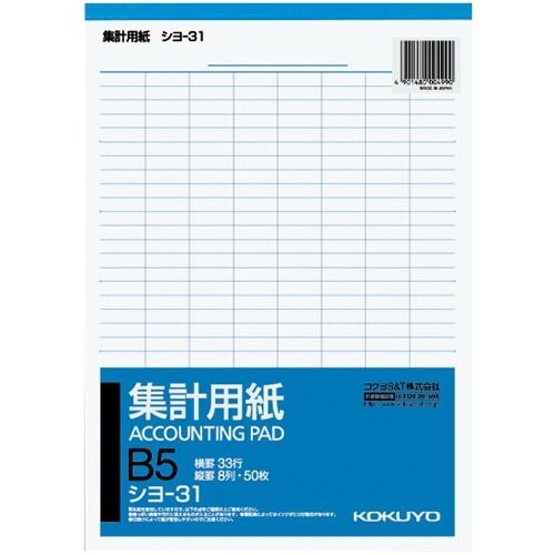กระดาษนับเลข ขนาด B5 แนวตั้ง 8 คอลัมน์ 33 บรรทัด 50 แผ่น Sho-31