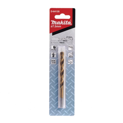 D-64135 ดอกสว่าน HSS-TIN สีทอง 7.5X109MM