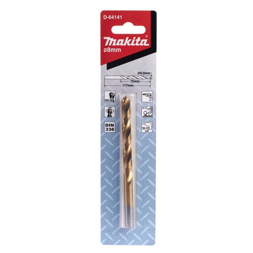 D-64141 ดอกสว่าน HSS-TIN สีทอง 8X117MM