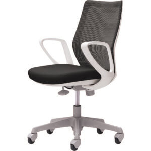 CG-M แผ่นรองหลังไม่มีศอก มีขาแขวน ตัวถังสีขาว ล้อยางสีเทา