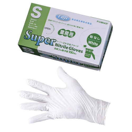 ถุงมือฟูจิ ซุปเปอร์ไนไตรล์ สีขาว (ไม่มีแป้ง) S (100 ชิ้น)