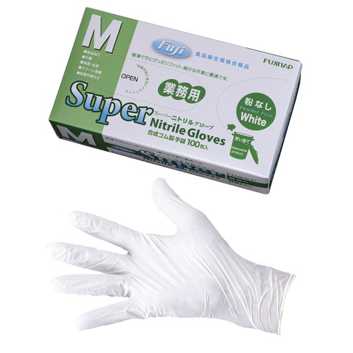 ถุงมือไนไตรล์ ฟูจิ ซูเปอร์ สีขาว (ไม่มีแป้ง)