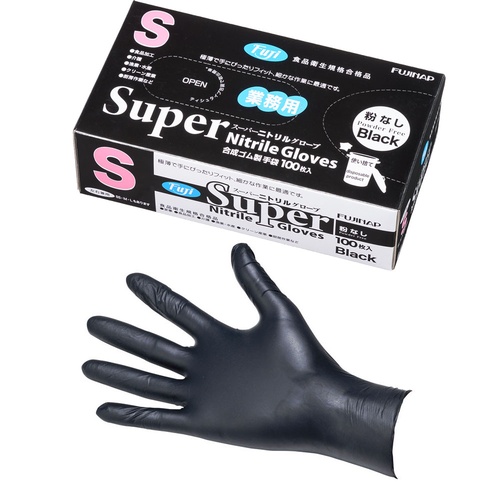 ถุงมือฟูจิ ซุปเปอร์ไนไตรล์ สีดำ (ไม่มีแป้ง) S (100 ชิ้น)