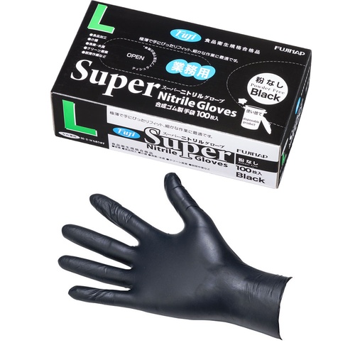 ถุงมือฟูจิ ซุปเปอร์ไนไตรล์ สีดำ (ไม่มีแป้ง) L (100 ชิ้น)