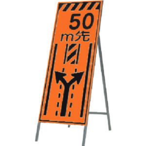 ป้ายสะท้อนแสงเรืองแสงสูง ข้างหน้า 300 ม. กำลังก่อสร้าง