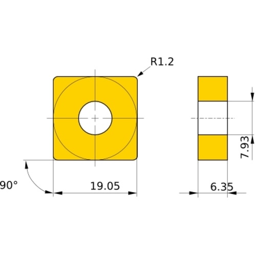 เม็ดมีดเกรด M, เหล็ก, ชนิด P, เม็ดมีด ISO, แบบลบ, สี่เหลี่ยม, สำหรับการตัดละเอียด, แบบลบพร้อมรู, MC6135