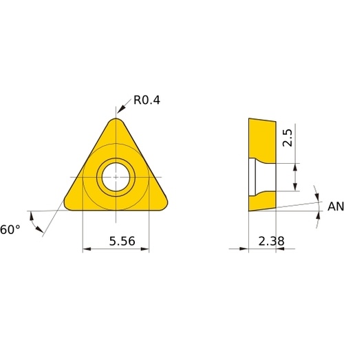 เม็ดมีด P-class, เม็ดมีด ISO, บวก, รูปสามเหลี่ยมด้านเท่า, C | การตัดเหล็กหล่อ, มีรู, บวก 7°, HTI10