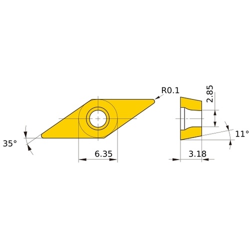 เม็ดมีดเกรด M, เหล็ก, ชนิด P, เม็ดมีด ISO, มุมบวก, เพชร 35°, สำหรับงานตกแต่งผิว, มีรู, มุมบวก 5°, MC6135
