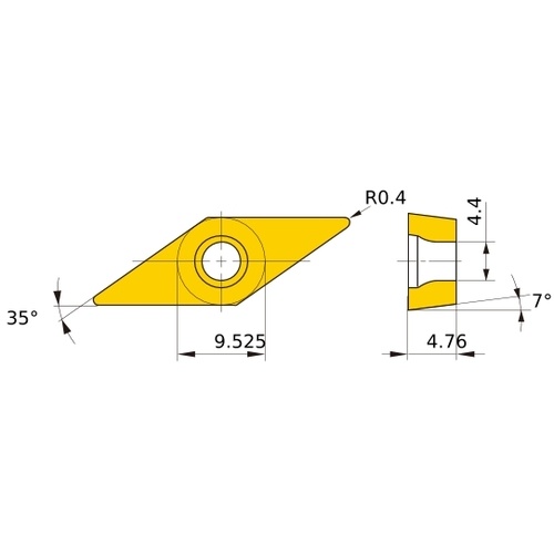 เม็ดมีด M-class, เม็ดมีด ISO, แบบบวก, เพชร 35°, การตัดเบา, มีรู, บวก 5°, VP30RT