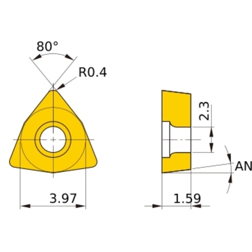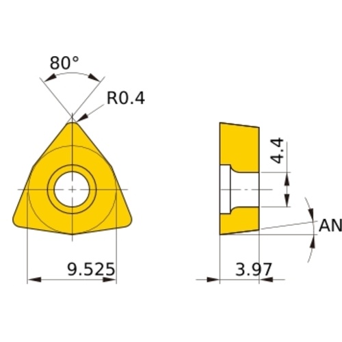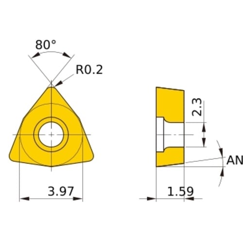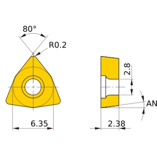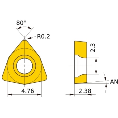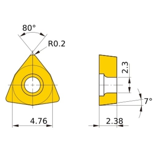 เม็ดมีด M-class, เม็ดมีด ISO, แบบบวก, หกเหลี่ยม 80°, สำหรับการตัดละเอียด, มีรู, มุมบวก 7°, VP30RT
