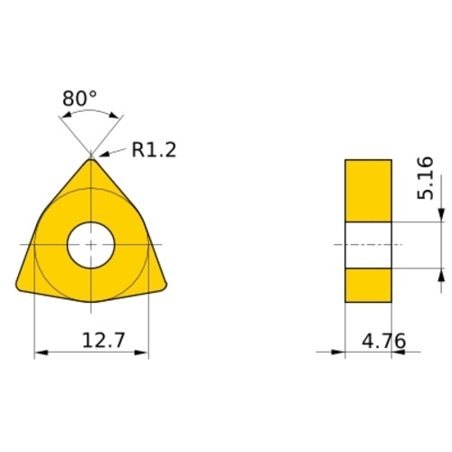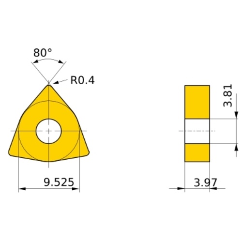 เม็ดมีดเกรด M, เหล็ก | ชนิด P | การตัดปานกลาง | WP | มุมเอียงบวก 11° | มีรู | เกรด M MC6125