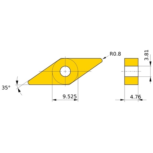 เม็ดมีดเกรด M, เหล็ก, ชนิด P, เม็ดมีด ISO, แบบบวก, เพชร 35°, การตัดเบา, มีรู, มุมบวก 7°, MC6135
