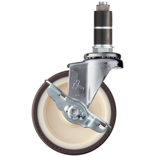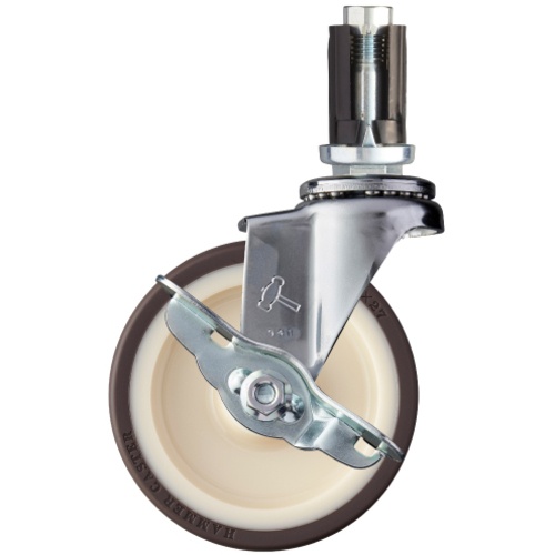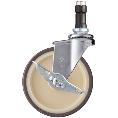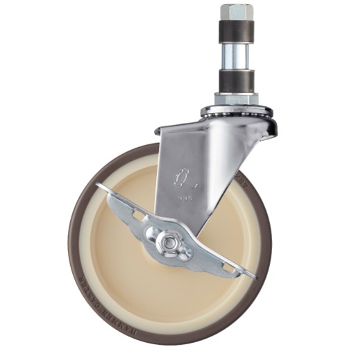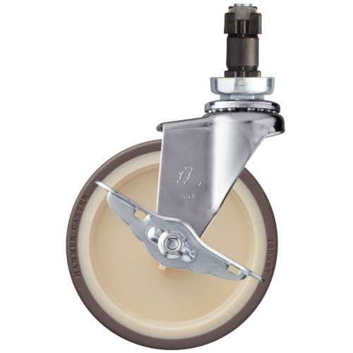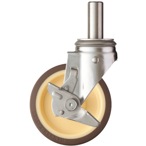 ค้อน, ล้อยูรีเทนหมุนสอดท่อ (ล้อไนลอน), 100 มม., φ25, พร้อมตัวหยุด