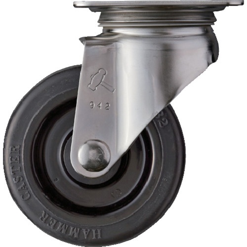 ลูกล้อสแตนเลส Hammer Plate Caster แบบหมุน เส้นผ่านศูนย์กลางล้อ 100 มม. ล้อยาง ซีรีส์ S