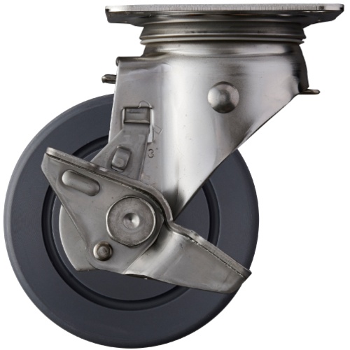 ลูกล้อสเตนเลส Hammer Plate Caster แบบหมุน (มีตัวหยุด) เส้นผ่านศูนย์กลางล้อ 100 มม. ไนลอน MC ซีรีส์ S