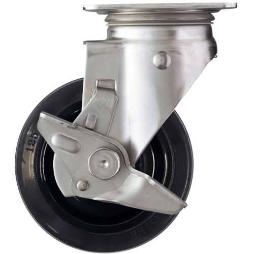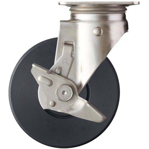 ลูกล้อสเตนเลส Hammer Plate Caster แบบหมุน (มีตัวหยุด) เส้นผ่านศูนย์กลางล้อ 100 มม. ไนลอน MC ซีรีส์ S