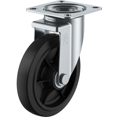 Plate Type Noise Reduction Caster (nylon wheel rubber tire/stainless steel fittings) Flexible