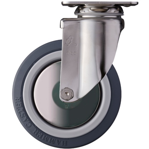 ลูกล้อสเตนเลส Hammer รุ่น 320E (ล้อไนลอนยูรีเทน อุปกรณ์สแตนเลส) พร้อมตัวหยุดหมุน เส้นผ่านศูนย์กลางล้อ 125 มม.