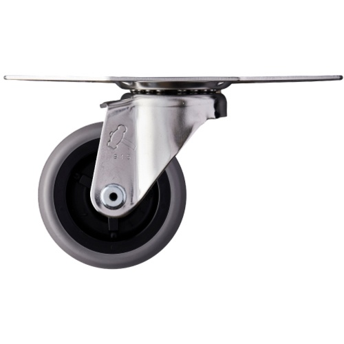 ค้อนสแตนเลสทั้งหมด มุม E-type แกนหมุน ล้ออีลาสโตเมอร์ 100 มม.