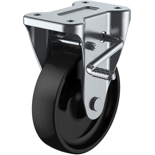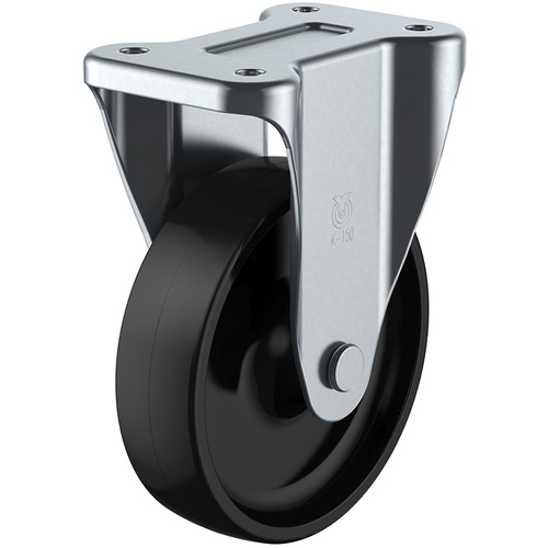 ล้อเลื่อนแบบจานคงที่ ฟีนอลิก เส้นผ่านศูนย์กลางล้อ 100 มม. พร้อมตัวหยุด แบบ J ประเภท KB(R) ขนาดการติดตั้ง 80 x 45