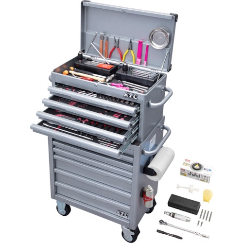 ชุดตู้เก็บเครื่องมือช่าง (Chest Type Tool Set) ตู้โดยทั่วไปจะสร้างด้วยพลาสติกหรือวัสดุโลหะ ที่ประกอบด้วยลิ้นชักและบางครั้งสามารถเปิดออกได้อย่างง่ายดายเพื่อให้เข้าถึงและจัดเก็บได้ง่าย ตู้เครื่องมือมีมือจับสำหรับยกและเคลื่อนย้าย นอกจากนี้ยังมีช่องสำหรับติดชื่อเพื่อจะได้เครื่องมือได้สะดวก รวดเร็ว และมีระบบรักษาความปลอดภัยป้องกันขโมย