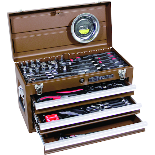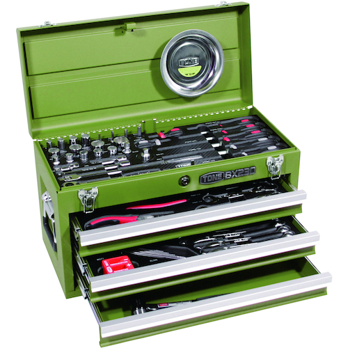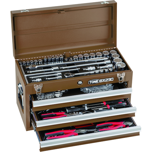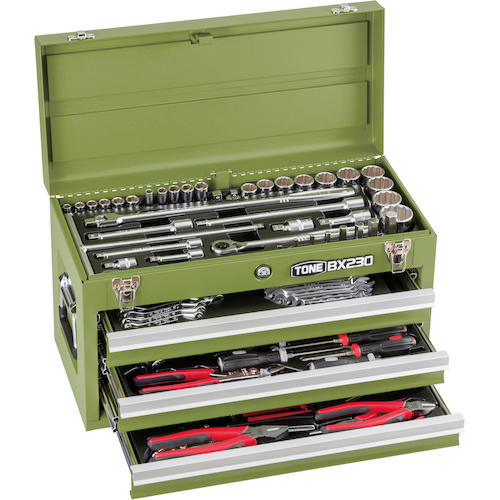 ชุดตู้เก็บเครื่องมือช่าง (Chest Type Tool Set) ตู้โดยทั่วไปจะสร้างด้วยพลาสติกหรือวัสดุโลหะ ที่ประกอบด้วยลิ้นชักและบางครั้งสามารถเปิดออกได้อย่างง่ายดายเพื่อให้เข้าถึงและจัดเก็บได้ง่าย ตู้เครื่องมือมีมือจับสำหรับยกและเคลื่อนย้าย นอกจากนี้ยังมีช่องสำหรับติดชื่อเพื่อจะได้เครื่องมือได้สะดวก รวดเร็ว และมีระบบรักษาความปลอดภัยป้องกันขโมย